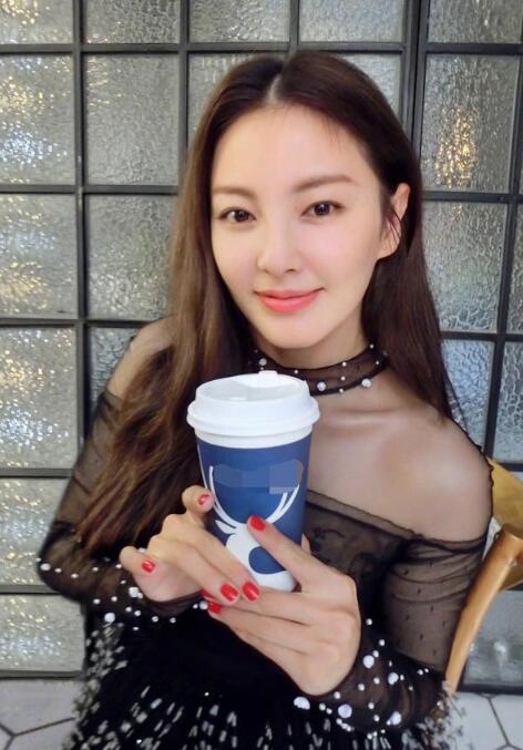 张雨绮穿黑色透视装手捧咖啡 锁骨吸睛甜笑性感