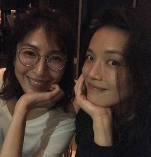 舒淇杨谨华托腮合影 素颜出镜随性又真实