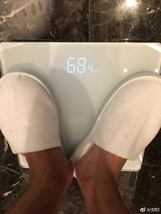 24日,郑恺在网上上传照片,并配文称:“先瘦8斤玩玩!”照片中的他脚踩体重秤,秤上写着:68.4公斤,看来郑恺瘦了不少。