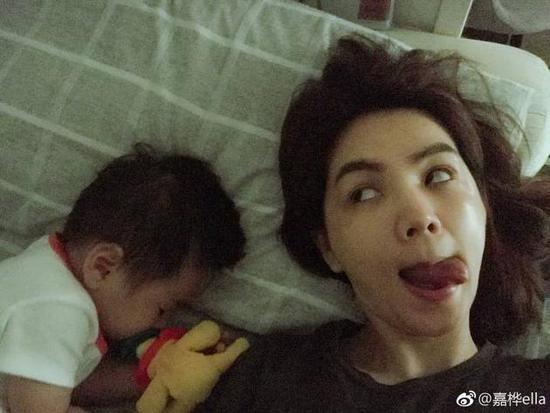 Ella晒与儿子睡颜合照 做鬼脸自嘲是无聊妈妈