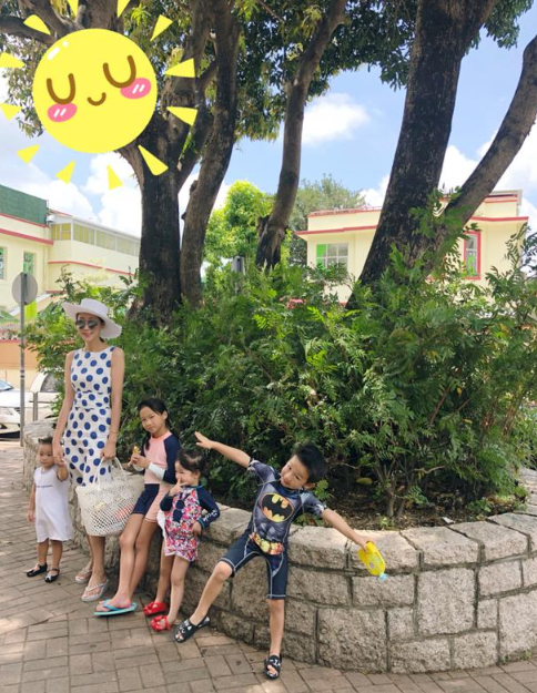 5月28日,蒋丽莎在自己微博上传照片,并配文称:“今天一拖四。”照片中,她身穿白底蓝色波点连衣裙,头戴草帽,面带黑超,身材苗条,完全是一副辣妈模样。在她身边,四个儿女摆出造型,十分可爱。