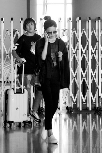 杨子姗丸子头素颜低调随性 机场偶遇赵薇