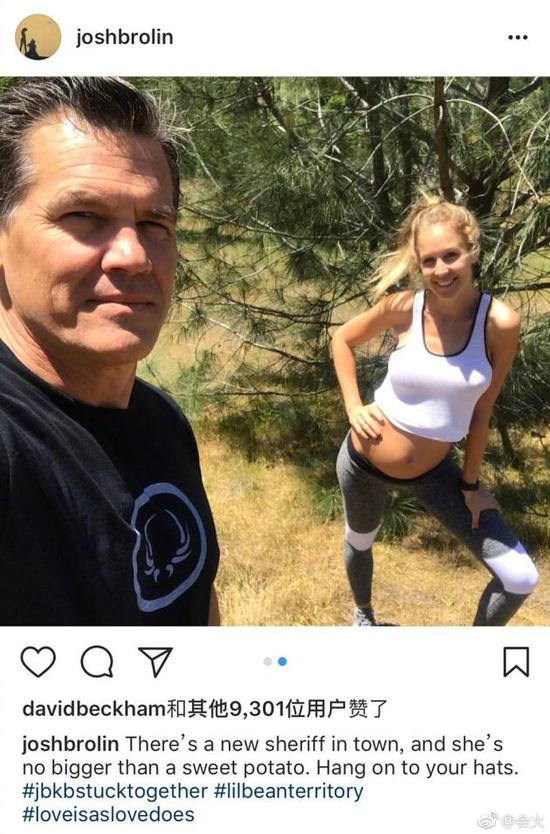 “灭霸”乔什布洛林晒妻子大肚照宣布怀女儿