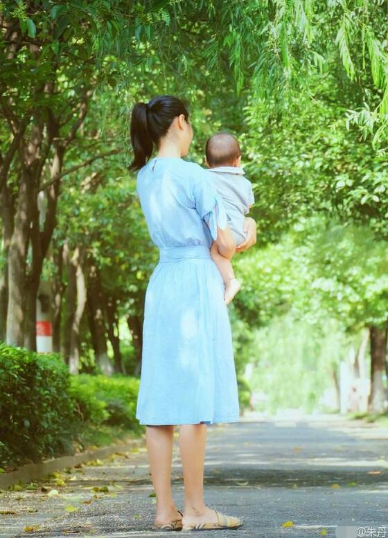 5月30日,朱丹晒出一张抱娃的照片。照片中的朱丹挽着马尾,带着女儿在林间小道散步乘阴,整个画面清新,充满清凉舒适的味道、