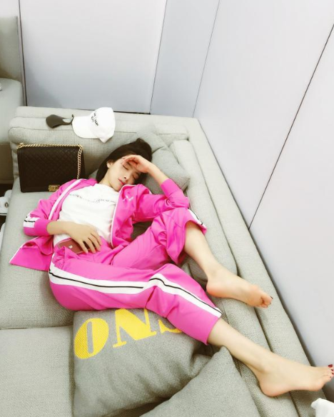 照片中宋茜一身运动服躺在沙发上小憩,双腿高高翘起,睡姿画风清奇,脚踝白皙纤细,被粉丝大夸美腿。