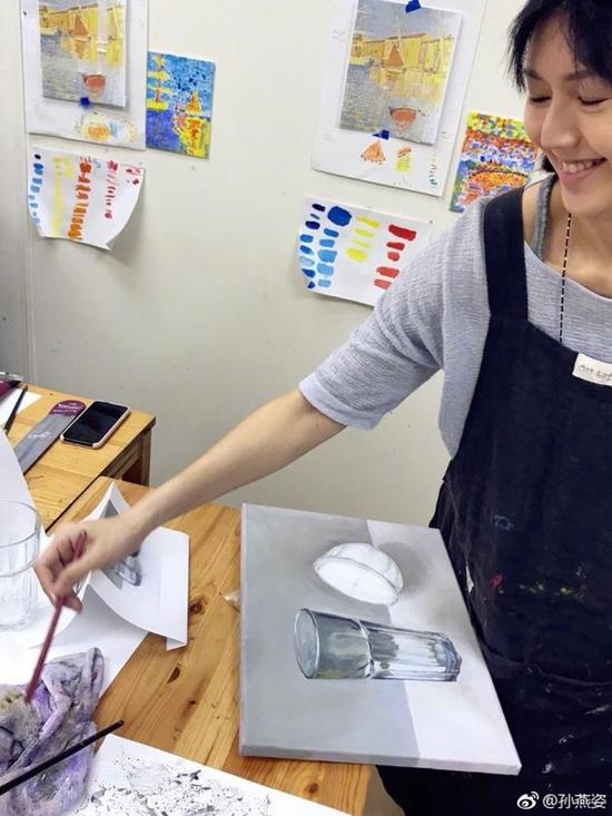 照片中孙燕姿穿着着作画用的围裙画画,笔下玻璃水杯栩栩如生,作为孕妈手臂依然纤细修长,令粉丝夸赞:“反正老大你做啥都是小仙女!”“无意识的把脸肚画都秀了。”