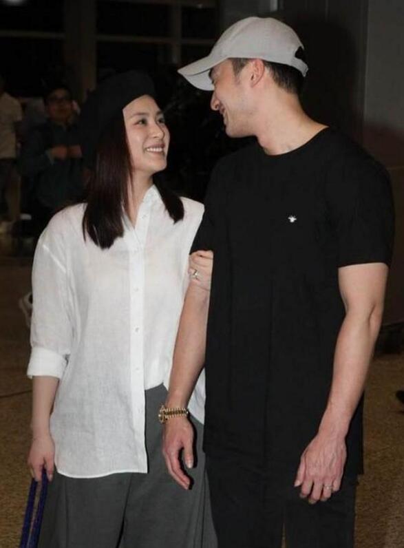 据报导,夫妻俩从步出机场大厅开始,手就全程牵紧紧,一下挽手、一下十指交扣,不时还甜蜜对望,大放闪光,连手上3克拉的鸽子蛋钻戒也特别抢镜。