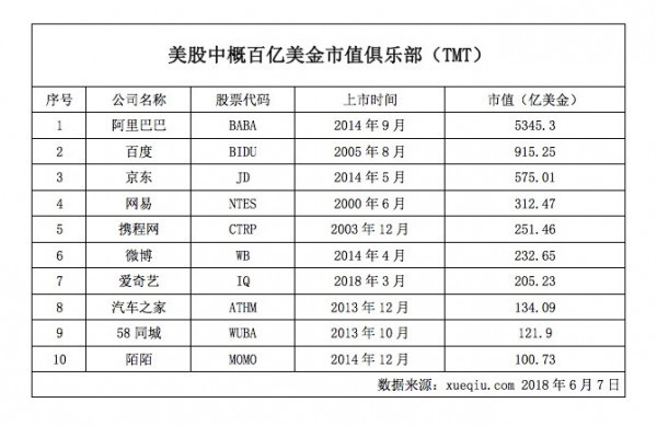 赴美上市中国科技公司市值10强榜单发布 最短上市不足1年