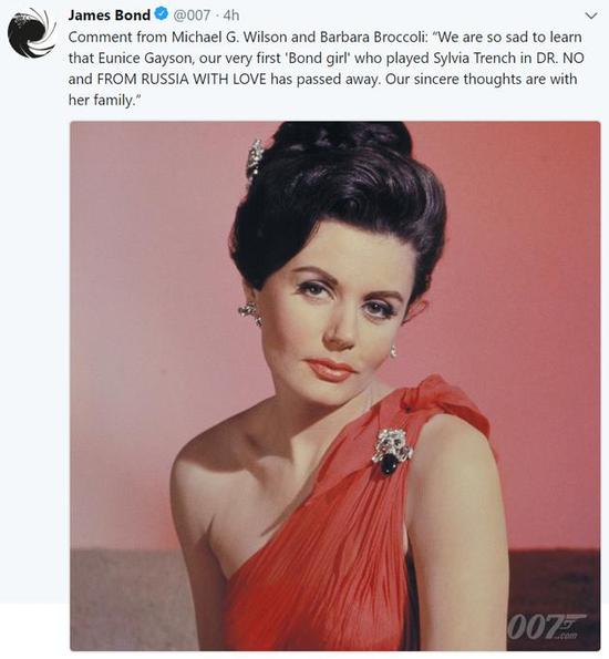影史首位邦女郎尤妮斯·盖里森去世 享年90岁