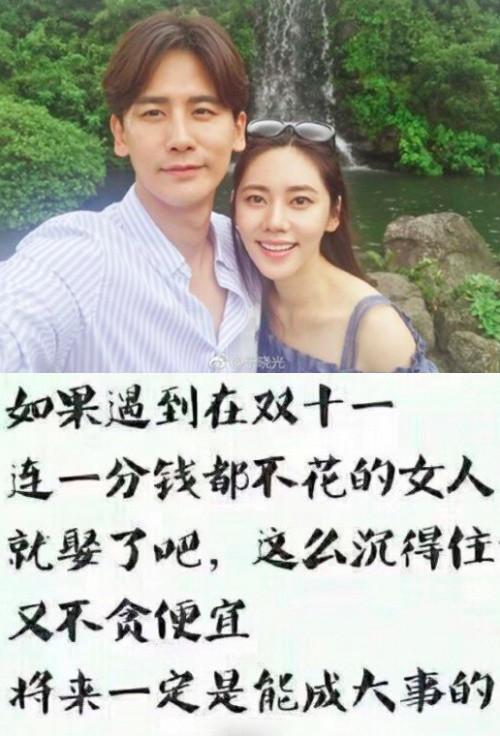 演员于晓光11日在微博上晒与秋瓷炫的合照并说道:“如果遇到在双十一连一分钱都不花的女人就娶了吧,这么沉得住气又不贪便宜,将来一定是能成大事的。”大夸在双十一这天没有进行任何消费