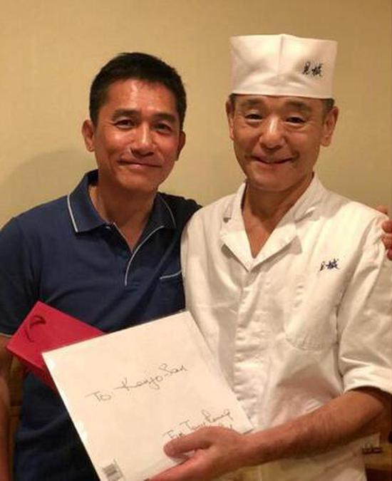 刘嘉玲在其个人社交平台晒出了一张丈夫梁朝伟和某香港著名日本料理店的厨师的合照并配文送别其退休。照片中厨师拿着梁朝伟一家送给他的礼物与梁朝伟合影,感情十分不错。