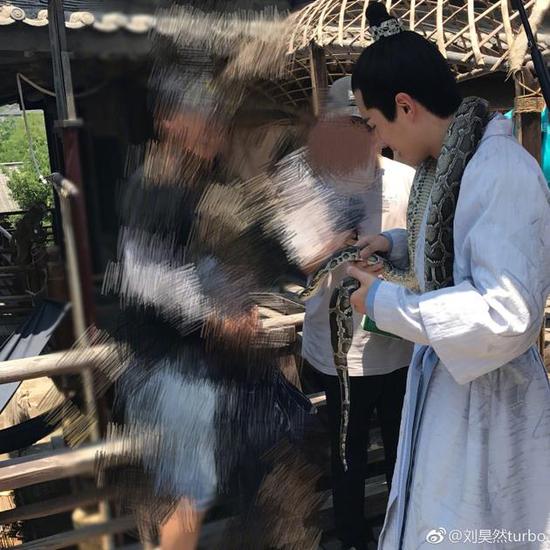 刘昊然片场蟒蛇挂脖子 自侃降暑“围脖”了解下