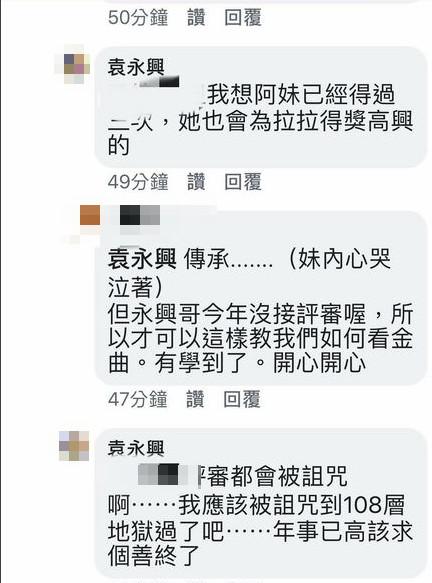 不过据报道,有音乐圈内人得知此事后,忍不住为袁永兴叫屈,认为这仅是他私人的讨论内容,金曲奖的机制是要到颁奖当天,所有评审才会齐聚投票、讨论,最后决定得主,所以在颁奖典礼前,“根本没人知道谁会得奖。”
