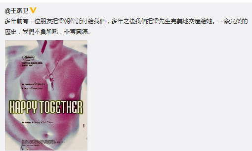 王家卫回应梁朝伟合同到期:光荣的历史 非常圆满