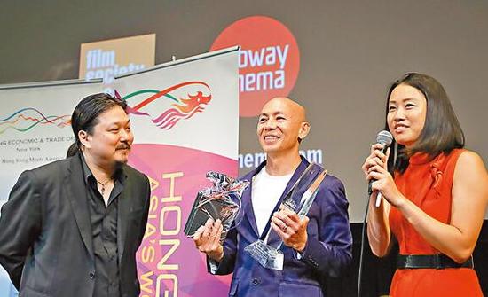 林超贤(中)在美国领取“最佳动作片导演奖”
