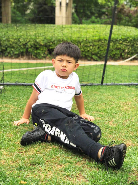 7月6日,胡可在自己的社交账号上晒出一组安吉的照片,并配文称:“练会儿球!”照片中的安吉在绿茵场上练习扑球,他身穿运动衣左扑右倒,看起来很是可爱。他不时开怀大笑、扁嘴卖萌,十分活泼。