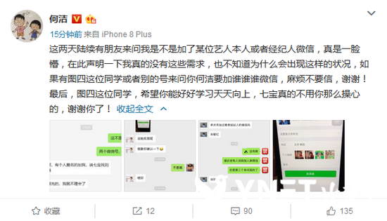 何洁自曝微信被人冒充 告诫大家不要相信