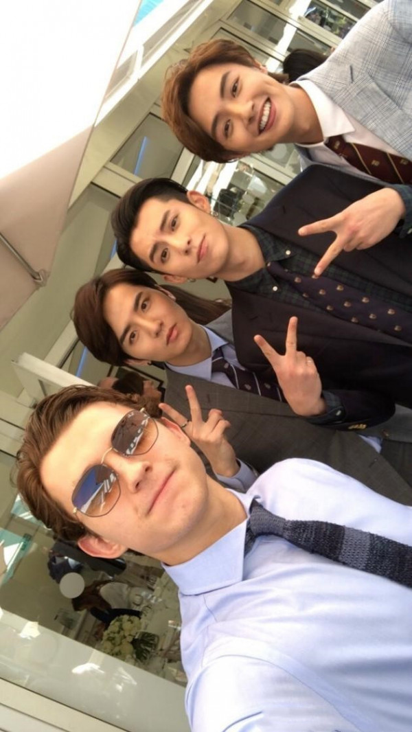 7月15日晚,“小蜘蛛”汤姆-赫兰德在微博晒出与《流星花园》主演王鹤棣、官鸿、吴希泽的合照,照片中四人风格迥异但都帅气十足。