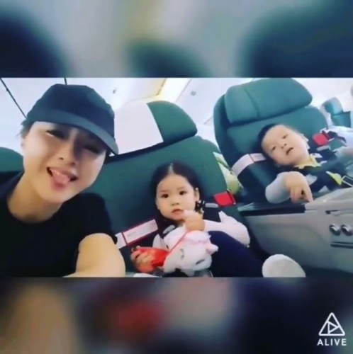 超人妈妈上线!陈茵媺一拖三回国机上兴奋自拍