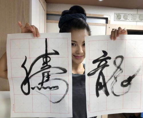 7月19日,刘涛在微博晒出一张自己的书法作品,并配文:“字如其人,看我这是啥性格的人。”照片中的刘涛穿着休闲,头发高高束起,一只手拿着“龙”,一只手拿着