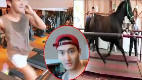 31岁的崔始源酷爱运动,近期他频频在个人社交平台上传跑步和骑自行车照片,似乎想挑战三项铁人。而近日始源就和队友银赫、东海等来到了澳门,他们在入住酒店期间也坚持跑步锻炼。18日,崔始源上传了一段他在跑步机跑步的片段,只见他发尽全力狂跑,背心的部分已经被汗水湿透,而他在也在视频的右边画面匹配了一段马在奔跑的片段作比较,他还配文:“真是好想一起跑起来。” 网友笑称不知是不是崔始源想挑战赛马?