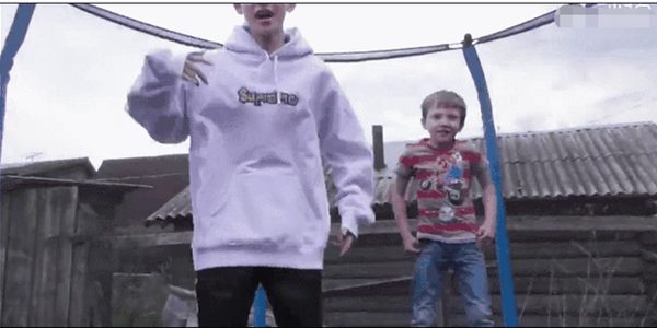 在小鬼向粉丝表达感激之情的同时蹦床上已经聚集了好几个金发碧眼的外国小孩与他一起蹦蹦跳跳,小鬼开心大呼自己是“孩子王”。
