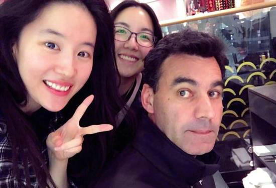刘亦菲素颜与工作人员合影 清纯甜美气质佳