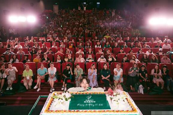 照片中的周笔畅扒在一个超大的蛋糕后面,露出手和头,身后的粉丝都整齐地坐着,丝毫没有混乱。大家相聚在一起,为偶像周笔畅庆生。