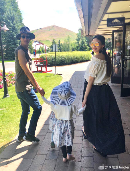 7月26日,王力宏妻子李靓蕾晒出一家四口一起出游的照片。她挺着巨大孕肚,和王力宏一起牵着两个女儿,一家四口十分幸福,两个女儿的背影也十分可爱。
