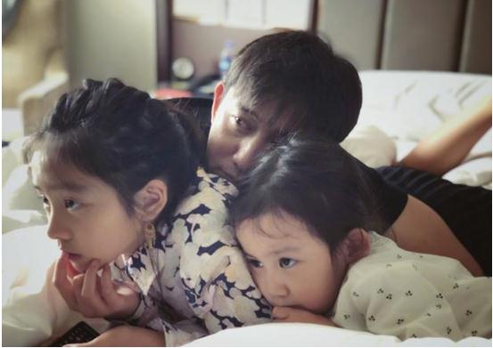 黄磊和一双女儿通过微博晒和一双女儿的照片,并写道:“在乌镇,想她们!”照片中,黄磊父女三人趴在床上,多妹依靠在姐姐身旁,黄磊将一双女儿搂在怀里,应该是在看电视,画面非常的温馨幸