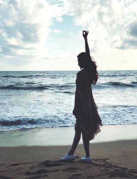 王晓晨海边随拍大片既视感 背影杀展现精致好身材