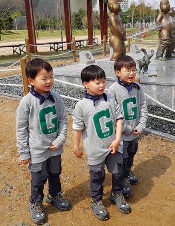 三胞胎近照曝光!大韩民国万岁初现小男子汉气质