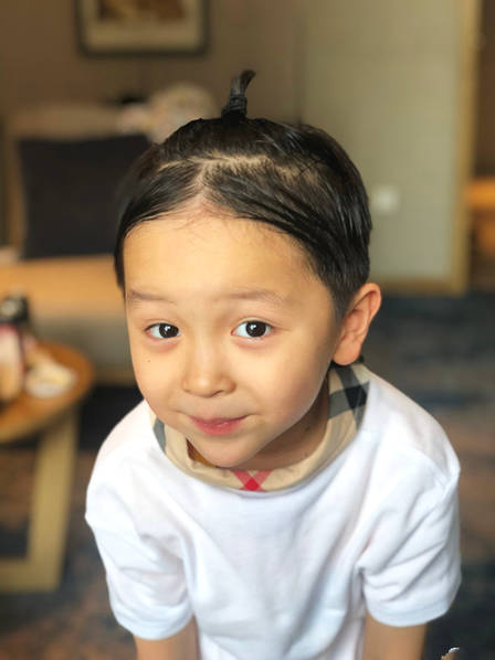 8月2日,邓莎在社交平台晒出儿子的近照,照片中,原本梳着西瓜头的大麟子被妈妈弄成了中分,还在头顶扎了一个小揪揪,非常有宫廷戏的范。