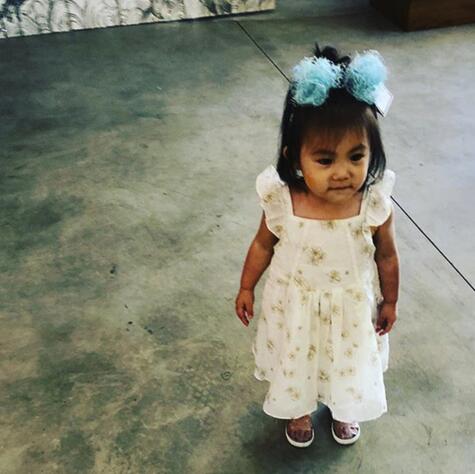 陈冠希在社交账号上晒出女儿Alaia的最新照片,照片中,Alaia身穿碎花小裙子,头戴蓝色的发饰,十分乖巧可爱。