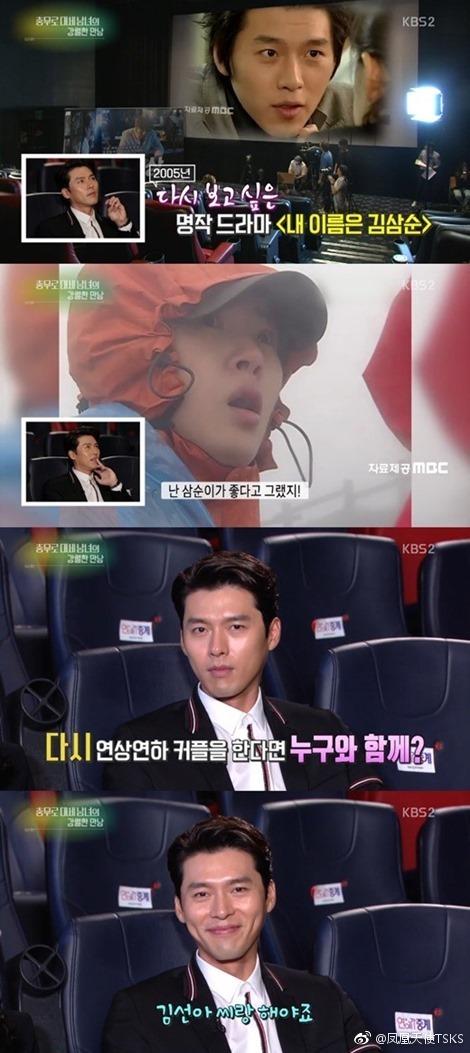 近日,演员玄彬和孙艺珍做客接受采访为新电影宣传造势,当天节目组准备多年前玄彬与金宣儿主演的大热电视剧《我的名字叫金三顺》的视频,一旁的孙艺珍表示“真的很抱歉,我没看过这部剧。”闻言玄彬笑道,“来,把麦克风撤了吧。”被问及如果有机会再演姐弟恋想和谁合作时,玄彬也笑言“当然要和金宣儿啊。”