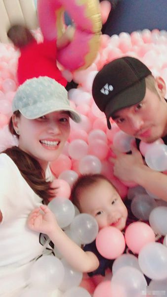 谢杏芳罕见晒全家福 与林丹儿子开心躺在海洋球里