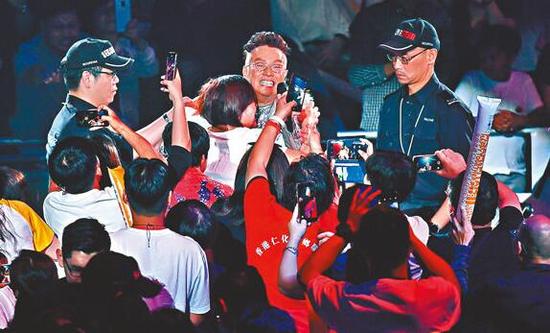 谭咏麟遭热情歌迷又抱又亲 哭笑不得