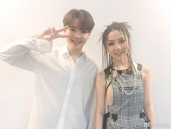 16日,尤长靖在自己微博上传一张与邓紫棋的合照,并配文称:“紫棋姐生日快乐!”照片里的他身穿白色衬衫,手比V字;邓紫棋身穿格子个性背带裙,一头脏辫,戴着大耳环,十分酷炫。两人皆