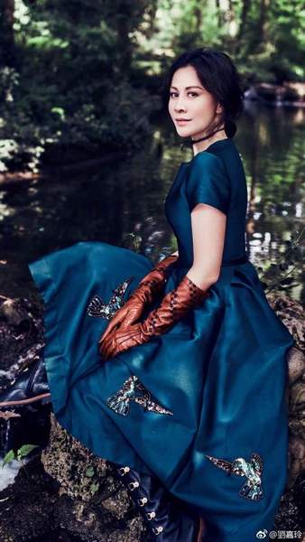 气质女神刘嘉玲端坐水畔 高贵典雅如油画中人