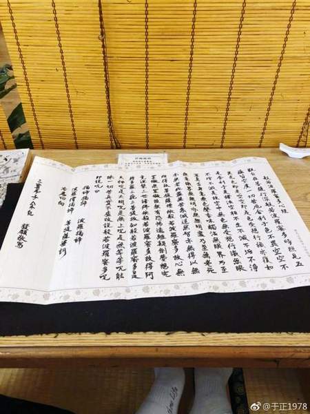 于正晒手抄心经近日,《延禧攻略》《如懿传》热播,部分粉丝分别就两者的精彩度、专业度等进行对比,甚至产生了一些不和谐的声音。于正23日晨发文表示“喜欢延禧攻略的粉丝们只专注咱们自己的剧就好,