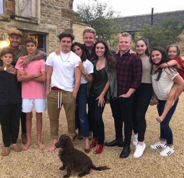 8月24日,贝克汉姆一家与戈登·拉姆齐一家在乡下度假,当天正好是戈登·拉姆齐娇妻的生日,两家人便一起为她庆生。当天两家还一起来了一个大合影,维多利亚靠在大儿子布鲁克林身上,贝克汉姆搂着两个小儿子。