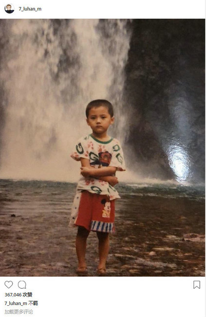 鹿晗晒童年萌照自称不羁 一脸严肃在瀑布前留影