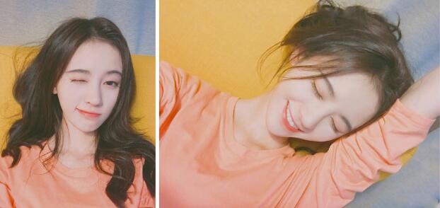 照片中的她身穿橙色上衣,闭眼微笑,皮肤白皙水嫩,少女感十足。她还对镜眨眼,微勾嘴角,看起来十分可爱。