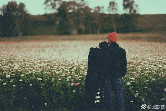 张歆艺靠袁弘肩膀秀恩爱 两人置身花海超浪漫