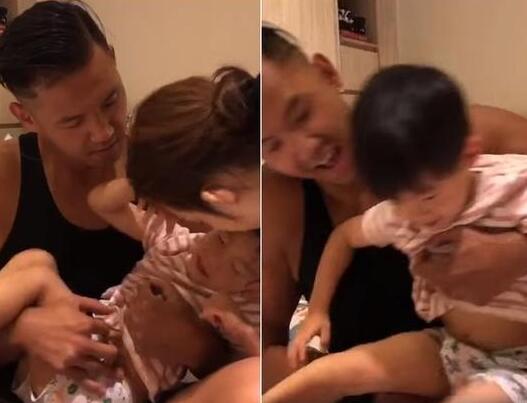 陈建州抱着难一脸难受模样的翔翔,面带愁容直喊:“翔翔晕倒了,呜呜~我的儿子”,宝贝虽身体挣扎着,仍半推半就的配合。他接着cue老婆范玮琪来亲亲拯救,一亲宝贝立刻恢复生龙活虎。下一段,黑人紧抱着儿子,只见孩子全身瘫软,小嘴微张,痛苦表示“我头晕……”,他假装紧张,直问“你还好吗”,宝贝这次总算配合,摆出一脸难受的样子,气若游丝地表示:“还好”,随后依偎在他胸前,睁着大眼求拍拍。