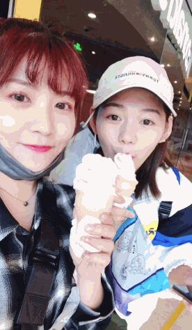 赖美云段奥娟吃冰淇淋咂嘴卖萌 自侃“小学鸡”