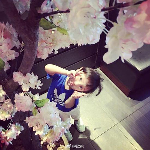 12日,欧弟在自己微博上传一张女儿JoJo的照片,并配文称:“这小孩真的很会!”照片中的JoJo站在花树下,冲着镜头比耶卖萌,认真摆造型的样子看起来十分可爱。