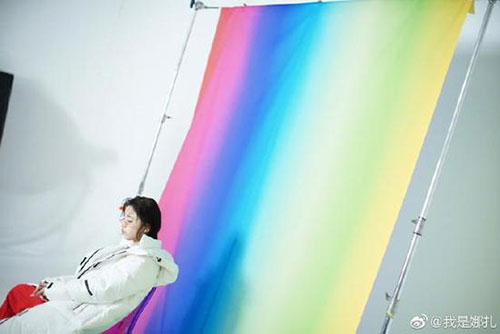 吹爆彩虹屁?娜扎在炫彩幕布前拍照有爱互动网友