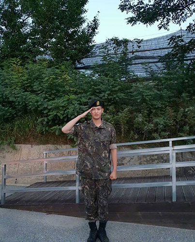 9月13日晚,韩国人气男团CNBULE成员李宗泫入伍后,通过个人社交平台上传了一张照片并写着“忠诚”二字的照片。照片中,他穿着军装对着镜头敬礼,神采奕奕。