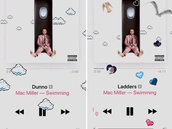 9月15日星期六,爱莉安娜在社交网上透露,自己正在听米勒的专辑《Swimming》,并晒出播出截屏,分别是《Dunno》和《Ladders》。歌曲封面上是身穿粉色西装打着领带的米勒光着脚坐在深色的门里。爱莉安娜为画面加上了朵朵乌云,象征了她此刻的心情。《Ladders》有一句歌词,应该也是A妹最真实的内心写照,“无论如何我们总得找到人生之道/不管山高水迢”。